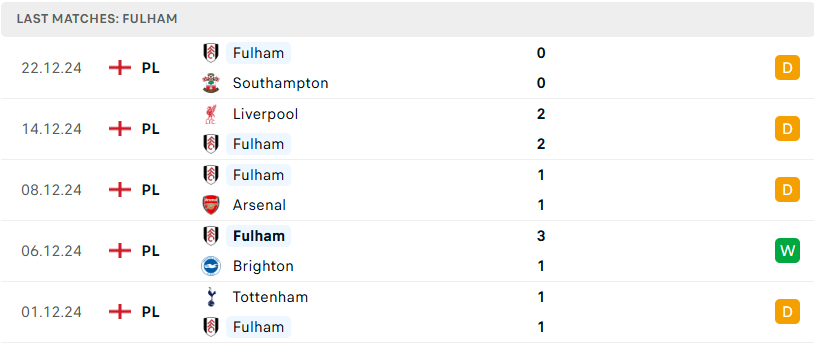 Phong độ đội bóng Fulham vs Bournemouth