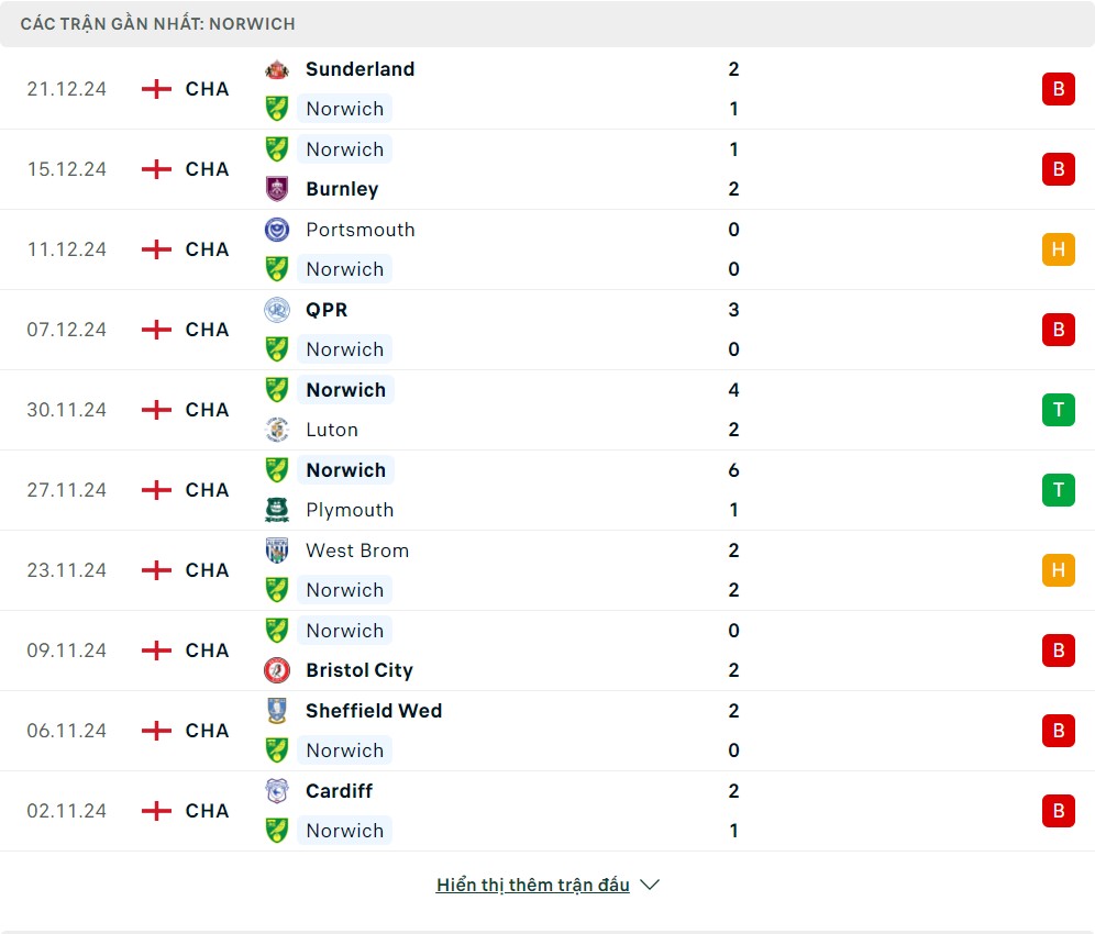 -Phong độ Norwich