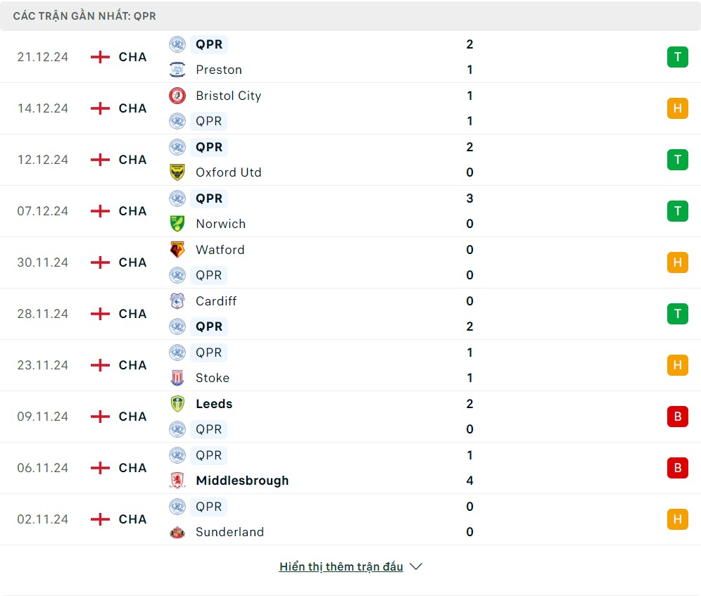 -Phong độ  Queens Park Rangers