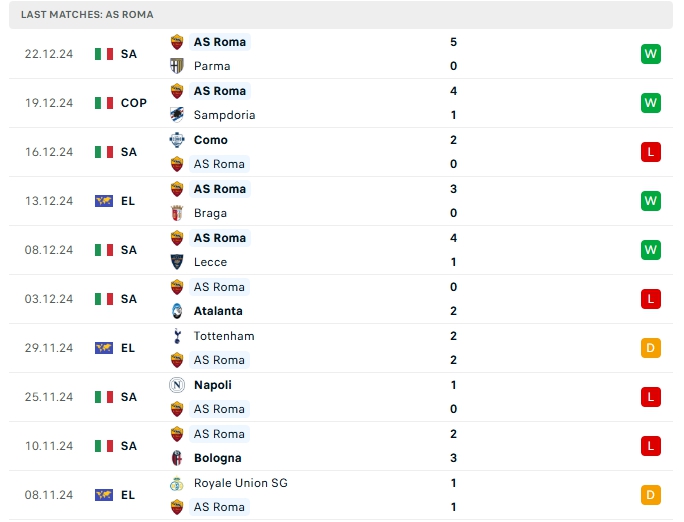 -Phong độ AS Roma