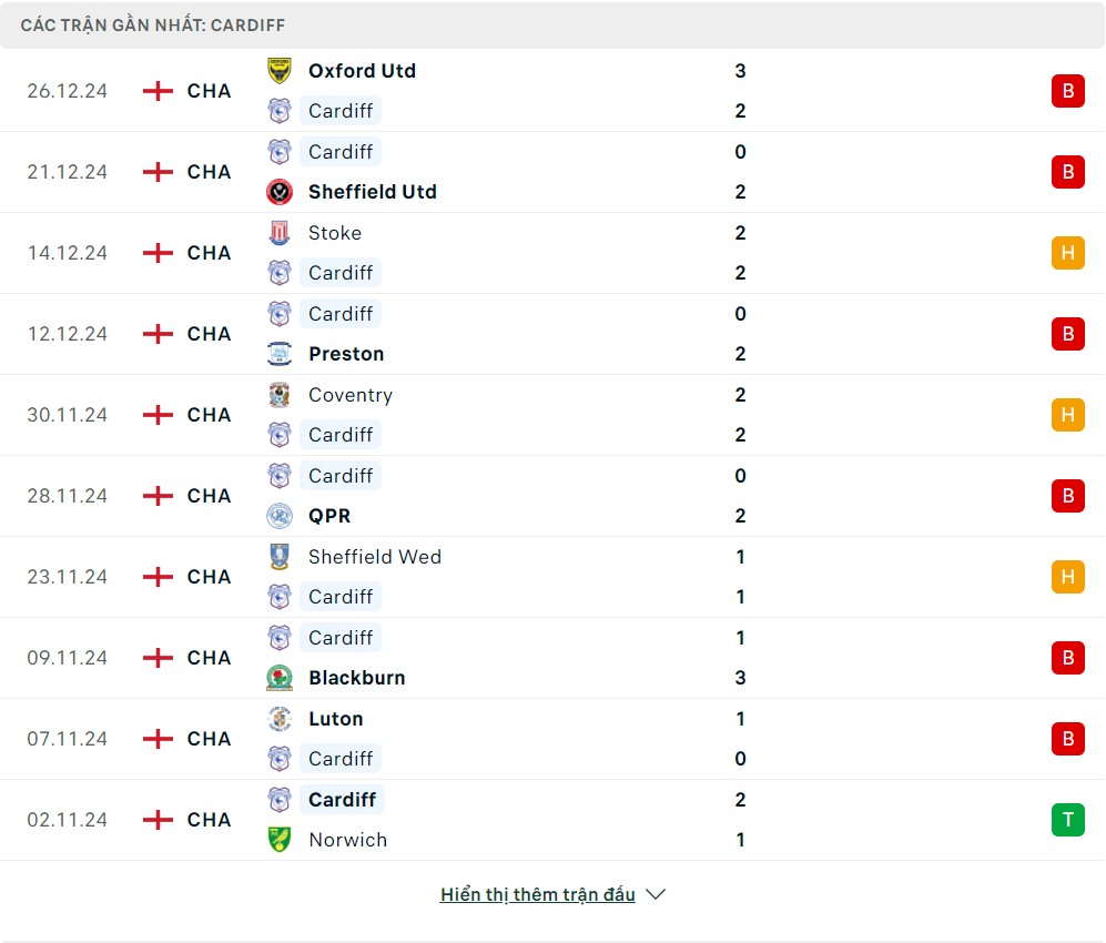 -Phong độ Cardiff City