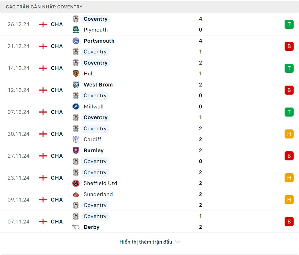 Phong độ đội bóng Cardiff City vs Coventry