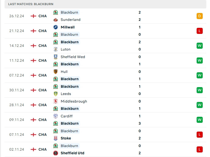 -Phong độ Blackburn Rovers