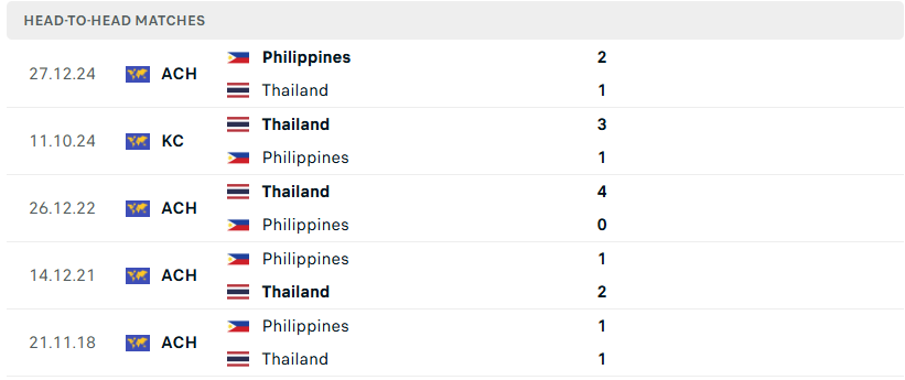 Thành tích đối đầu của Thái Lan vs Philippines