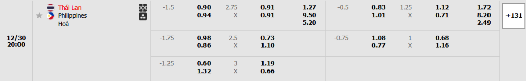 Soi kèo tỉ số Thái Lan vs Philippines