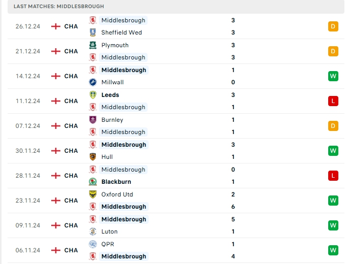Bên kia chiến tuyến Middlesbrough, họ vừa có trận hòa trước Sheffield Wed, đây là trận hòa thứ 2 liên tiếp và cùng là trận hòa thứ 6 của họ sau 23 trận đấu, cùng với 10 chiến thắng và 7 thất bại, có được 36 điểm và đang xếp vị trí thứ 7 trên BXH, hàng công của Middlesbrough có cho mình 41 bàn thắng cùng hàng thủ nhận 31 bàn thua, 3/5 trận vừa qua của Middlesbrough đều bùng nổ về mặt tỷ số, khi thi đấu xa nhà Middlesbrough có cho mình 22 bàn thắng cùng hàng thủ nhận 17 bàn thua sau 11 trận đấu, 4/5 trận xa nhà vừa qua khép lại vượt mốc 3 bàn.