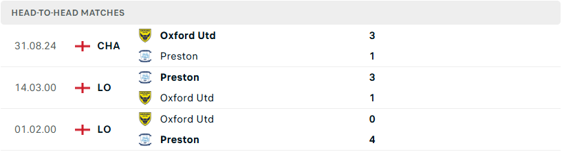 Thành tích đối đầu của Preston North End vs Oxford Utd