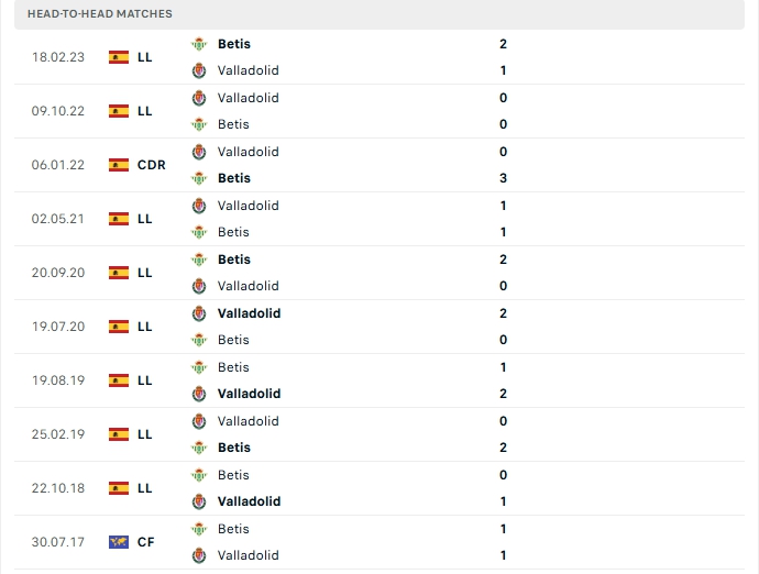 Những màn đụng độ giữa Valladolid và Real Betis là những trận cầu diễn ra với thế trận chặt chẻ và ít bàn thắng được tạo ra, cụ thể 7/10 trận gần nhất hai đội gặp nhau và 4/5 lần đón tiếp Real Betis trên sân nhà của Valladolid khép lại không quá 2 bàn thắng, một trận đấu đầy khó khăn cho việc tìm kiếm bàn thắng đến từ 2 đội.
