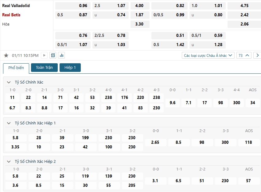 Kèo Châu Âu hiện vẫn đang là sự nhỉnh hơn đáng kể dành cho Real Betis, khi mức ăn của họ là 1.87 trong khi con số này của đội chủ nhà Valladolid là 4.00. Điều này cho thấy, dù là đại diện cho phía đội khách nhưng ‘binh đoàn xanh’ vẫn nhận được rất nhiều sự tin tưởng. Sự đối lập về phong độ cho đến thực lực và chất lượng con người sẽ khiến trận đấu diễn ra theo kịch bản thuận lợi cho Betis.